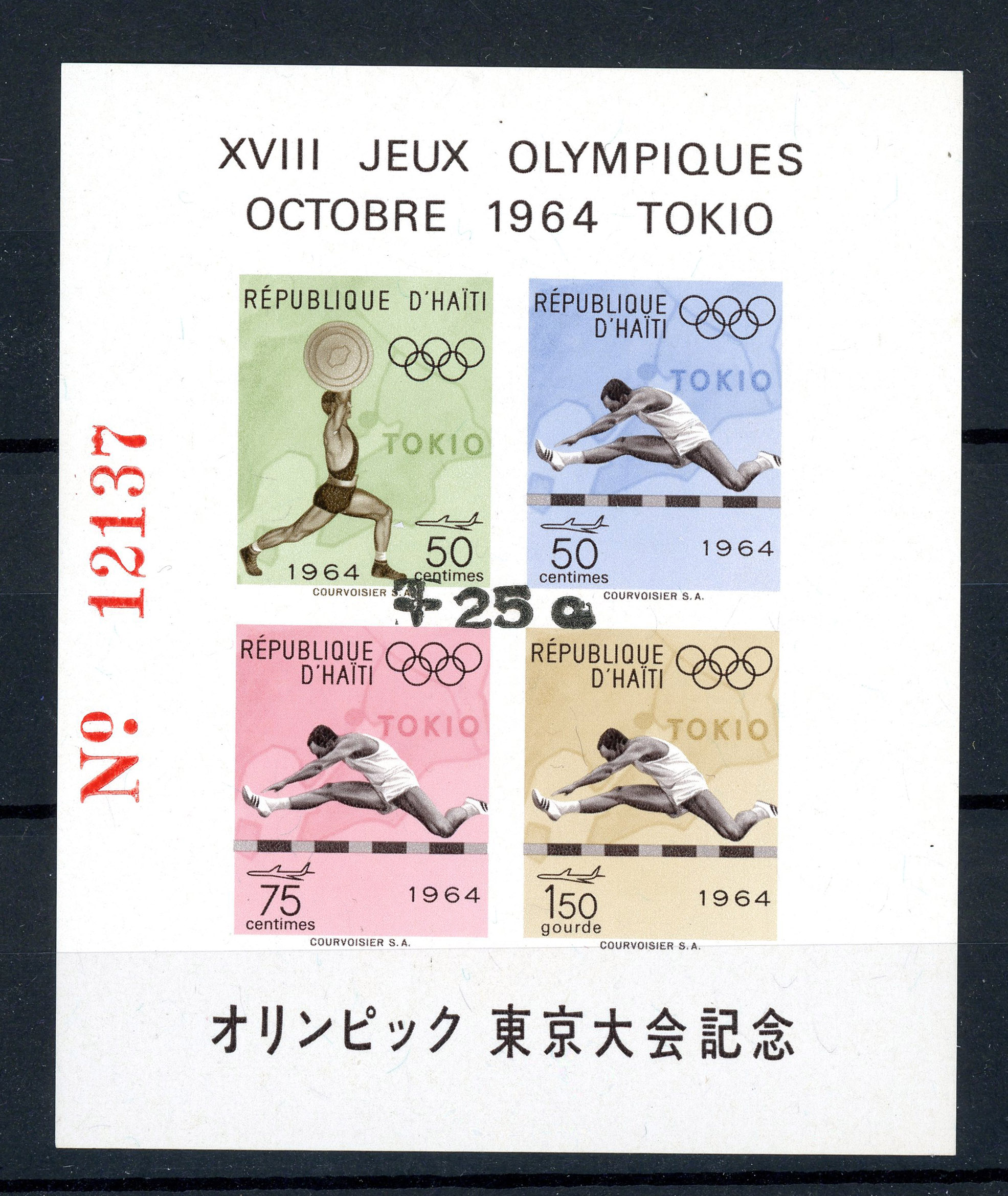 | 24 | #CB54. Tokyo Olympics souvenir sheet with 25c surcharge. MNH. Catalog value: $8.00. | 1.50 | 1.50 |
