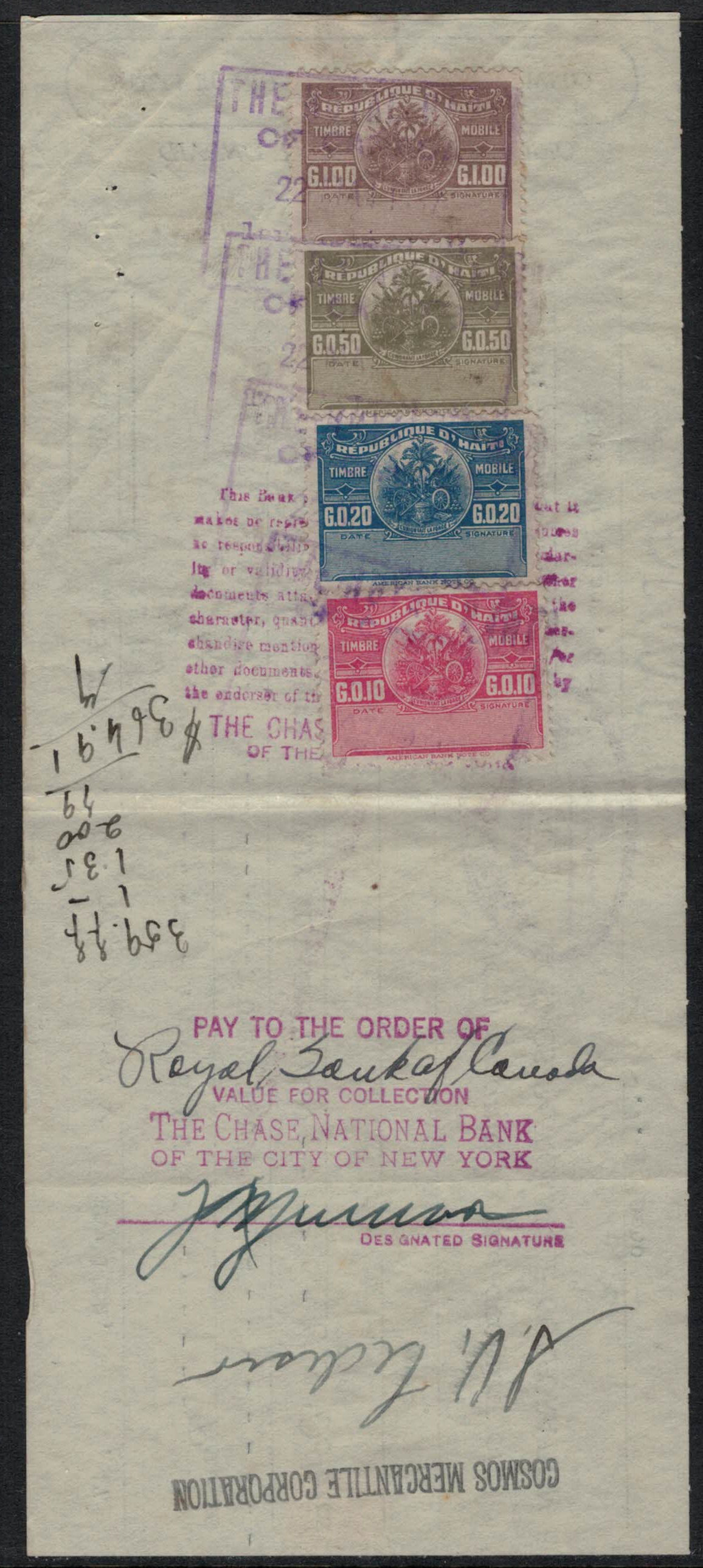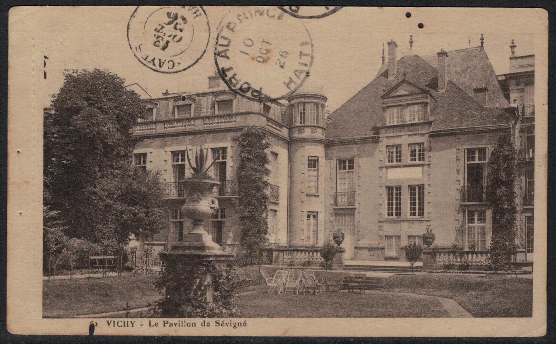 | 29 | Postcard, Vichy, France, to Cayes, Haiti. Receiving on 13 October 1926, stop in Port-au-Prince on 10 October 1926. F-VF condition.  | 3.25 | No bids |